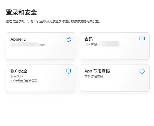 当您成功输入完以上信息后,页面将跳转到登录和安全页面,恭喜您,您的香港 Apple ID 已经注册成功了。